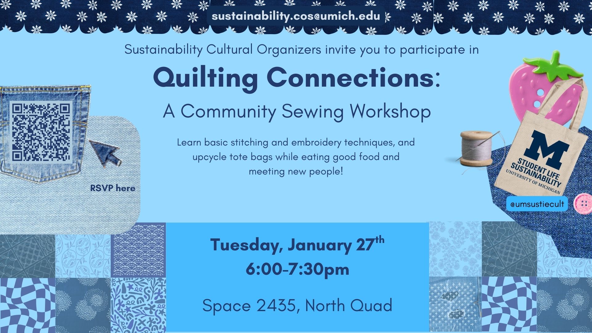 community sewing workshop slide Campaign Dates Tue, 01/20/2026 - 00:00 - Tue, 01/27/2026 - 23:59 Display Groups ITS Sites Print Queue Displays University Unions Organization Student Life Sustainability Cultural Organizers Contract Number AW26122 Read more about community sewing workshop