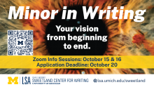 Minor in Writing slide Campaign Dates Sun, 10/12/2025 - 00:00 - Sun, 10/19/2025 - 23:59 Display Groups ITS Sites Print Queue Displays University Unions Organization Sweetland Center for Writing Contract Number AF25003c Read more about Minor in Writing
