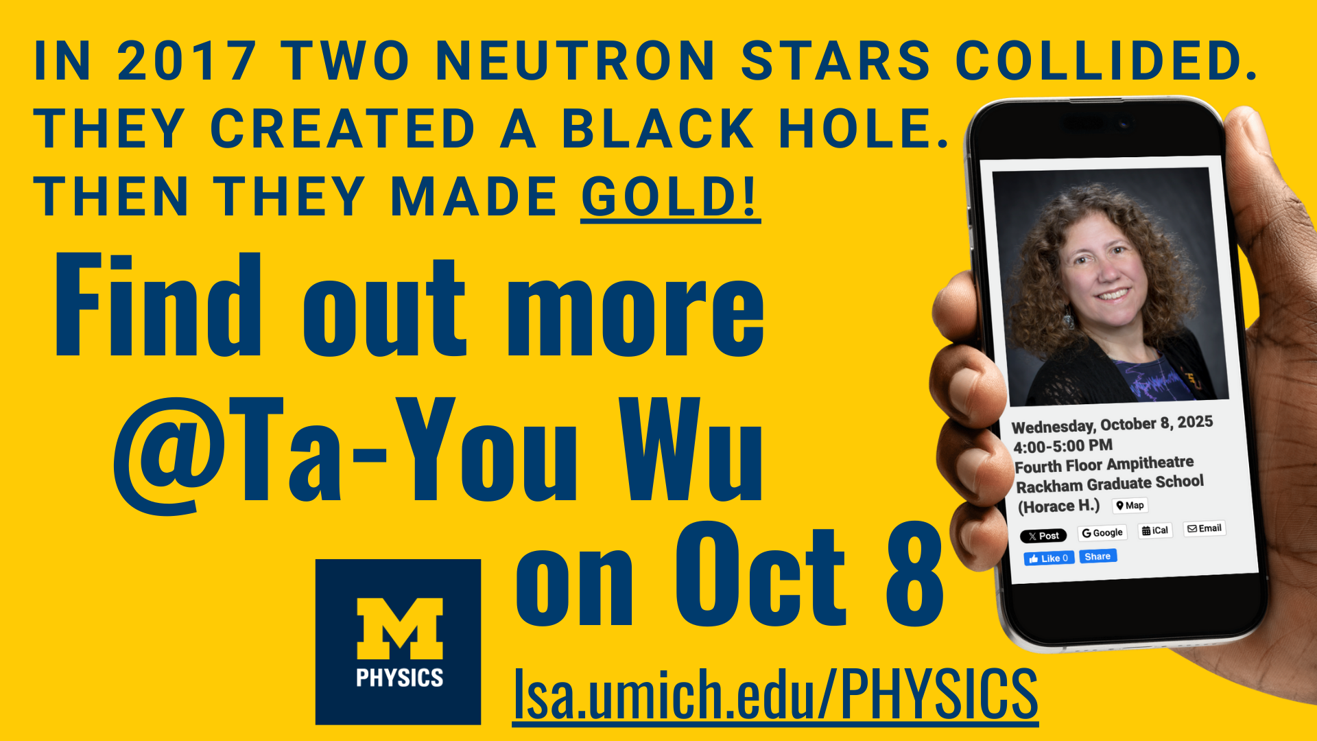 Saturday Morning Physics slide Campaign Dates Wed, 10/01/2025 - 00:00 - Fri, 10/03/2025 - 23:59 Display Groups ITS Sites Print Queue Displays University Unions Organization Department of Physics Contract Number AF25008 Read more about Saturday Morning Physics