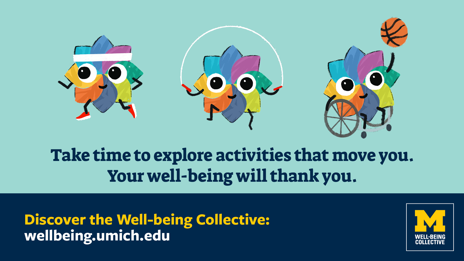 Well-Being Collective Awareness slide Campaign Dates Mon, 02/09/2026 - 00:00 - Sat, 02/28/2026 - 23:59 Display Groups ITS Sites Print Queue Displays University Unions Organization Michigan Creative for Well-Being Collective Contract Number AW26133 Read more about Well-Being Collective Awareness