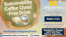 Student Sustainability Coalition Coffee Chats slide Campaign Dates Fri, 08/29/2025 - 12:26 - Fri, 09/05/2025 - 23:59 Display Groups ITS Sites Print Queue Displays University Unions Organization Student Sustainability Coalition Contract Number AF25106 Read more about Student Sustainability Coalition Coffee Chats
